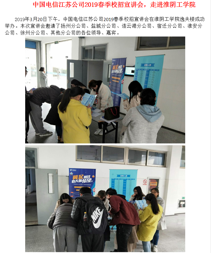 中國電信股份有限公司江蘇分公司淮安公司與淮安贏夏人力資源有限公司達(dá)成2020年春招合作!