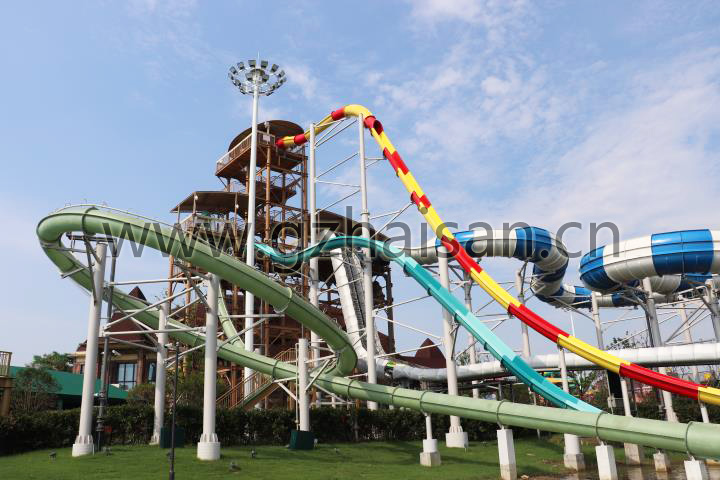 蘇州灣·夢幻水世界景區(qū)坐落于蘇州東太湖生態(tài)旅游度假區(qū)內(nèi),總規(guī)劃面積為12.1萬平米,海山游樂獨(dú)家提供該項目策劃規(guī)劃、主題景觀設(shè)計,以及部分設(shè)備制造安裝服務(wù)。在2016年被省旅游局評為2017年省級重點(diǎn)旅游項目,同時被省發(fā)改委評為2017年江蘇省重大投資項目,日最大承載量為24323人,瞬間最大承載量為14351人。于2019年6月28日盛大開園。蘇州灣·夢幻水世界是以馬達(dá)加斯加熱帶雨林風(fēng)情為主題,依托太湖天然水系資源,將豐富的熱帶雨林景觀與激情探險相結(jié)合,打造出國內(nèi)首家實景式馬達(dá)加斯加熱帶雨林水上樂園。水上樂園設(shè)計注重攝取馬達(dá)加斯加熱帶雨林地理風(fēng)貌、人文風(fēng)情、建筑藝術(shù)、生態(tài)景觀等鮮明的主題元素,使情景體驗與度假休閑有機(jī)結(jié)合與有效實現(xiàn),營造出極具熱帶風(fēng)情特色的水上休閑世界。