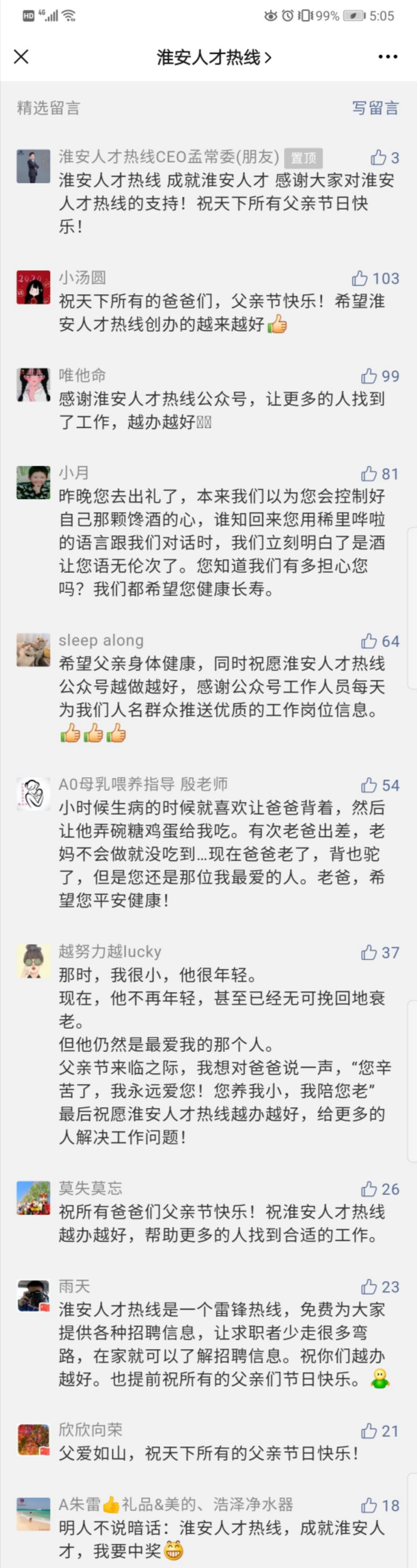 贏夏人力淮安人才熱線禮獻(xiàn)父親節(jié)微信留言活動(dòng)圓滿成功!