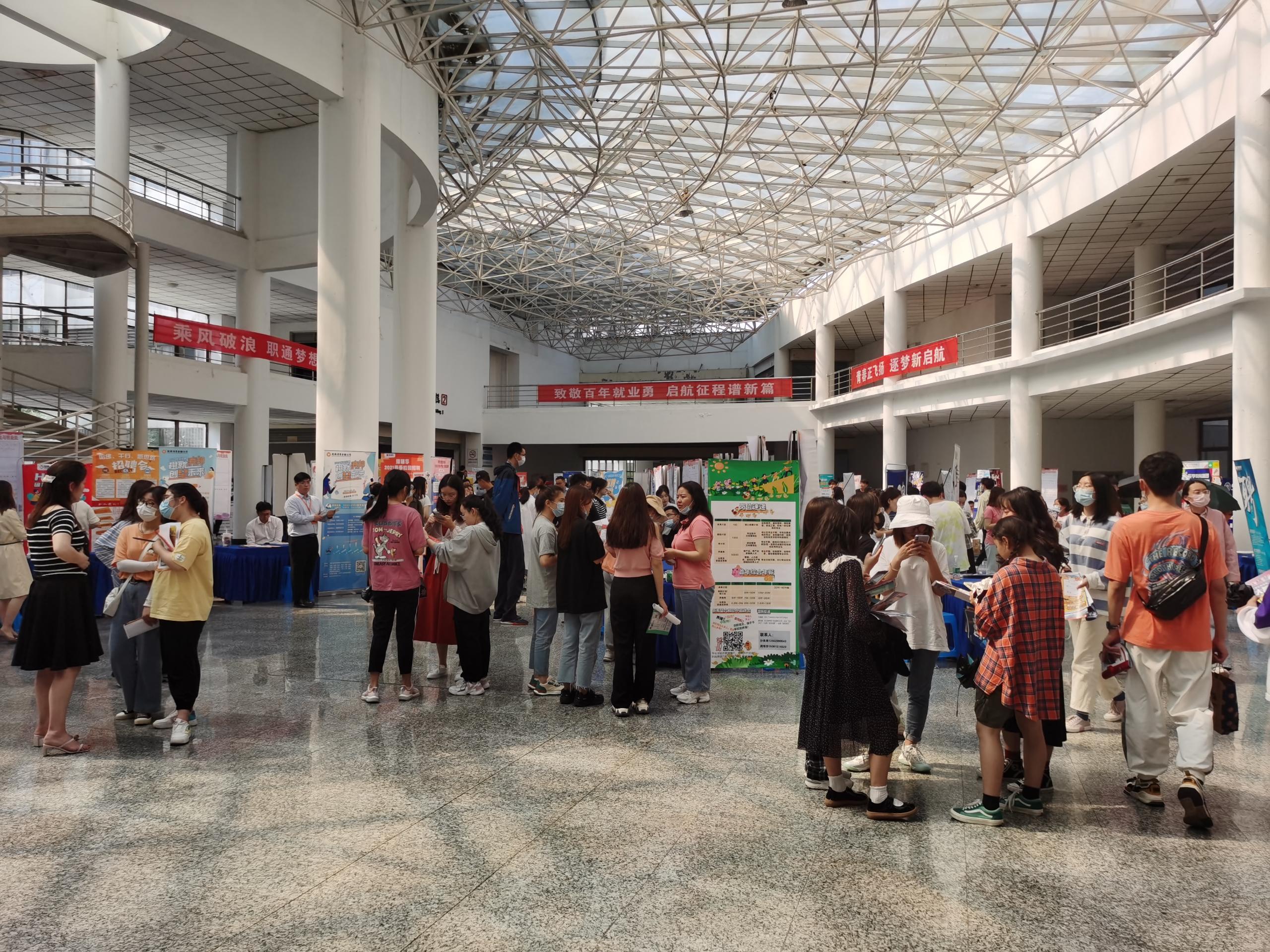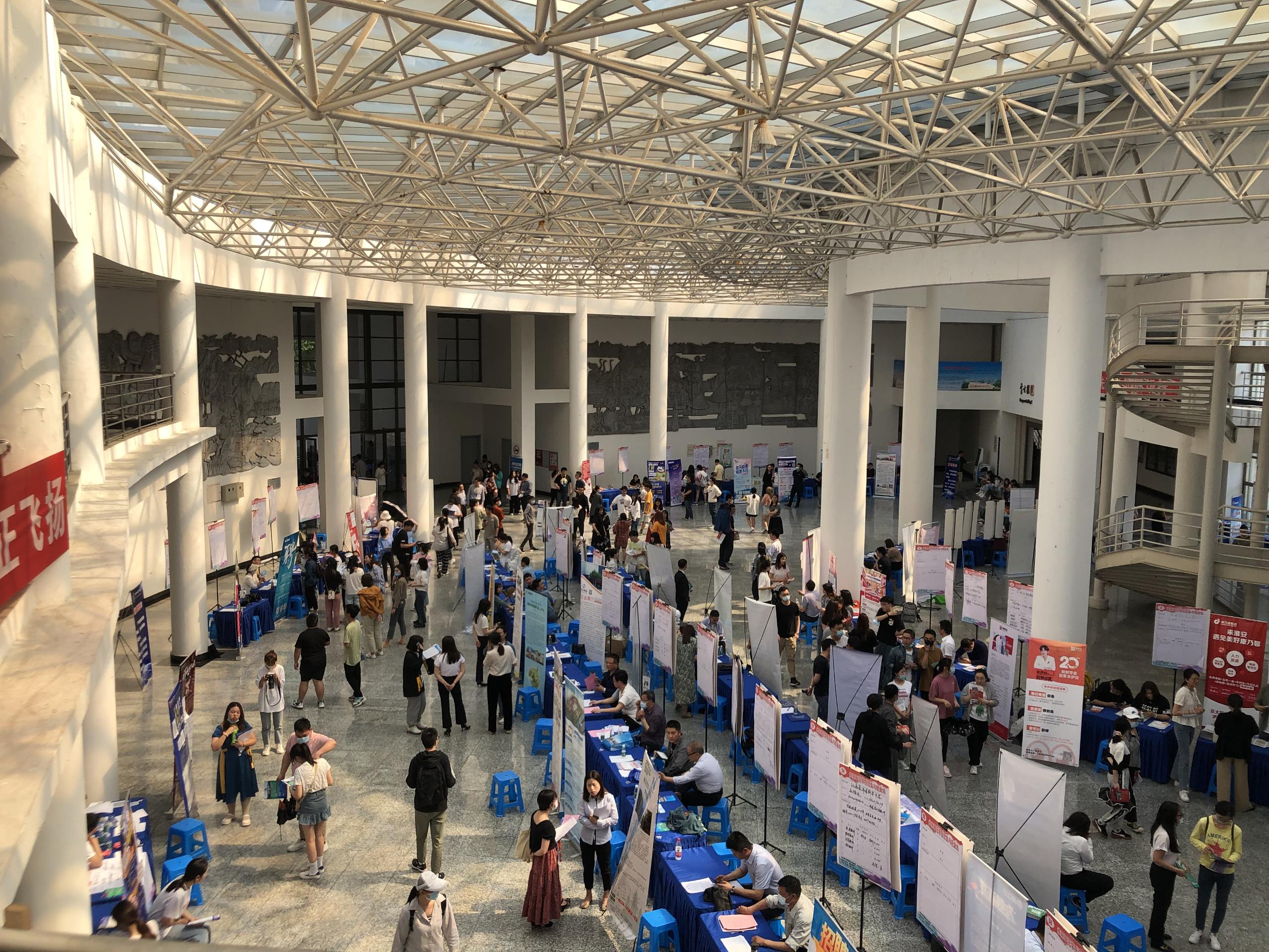 2021年5月22日下午,淮陰師范學(xué)院于長(zhǎng)江路校區(qū)崇文樓大廳舉行。參會(huì)的120余家單位提供9017個(gè)就業(yè)崗位,吸引5000多名畢業(yè)生前來咨詢,部分大三同學(xué)入場(chǎng)觀摩?;窗踩瞬艧峋€提供全方位服務(wù)支持。招聘會(huì)取得圓滿成功。
