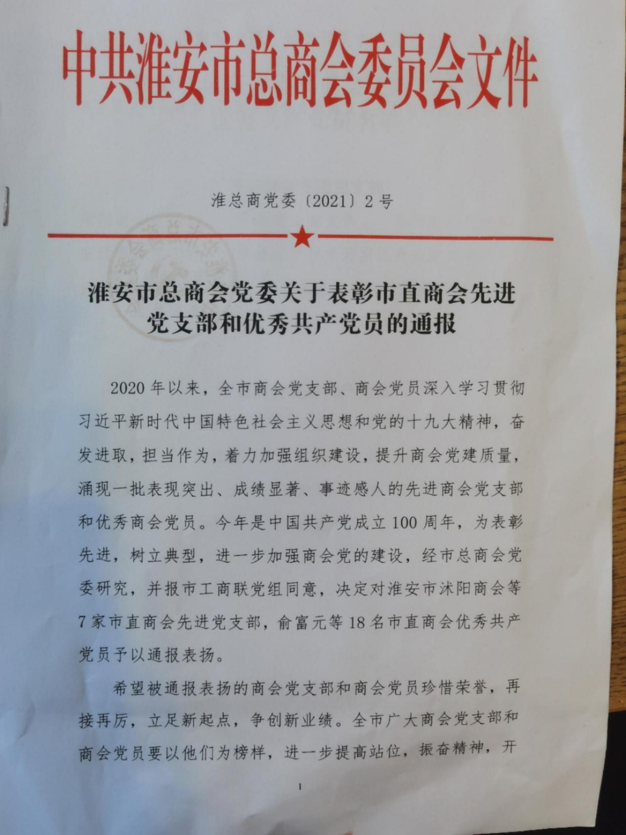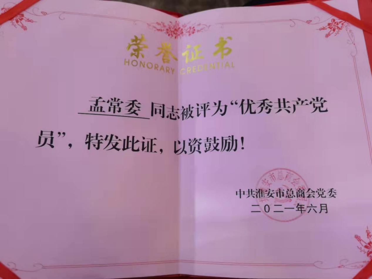 6月26日,淮安市總商會黨委召開市直商會先進(jìn)黨支部和優(yōu)秀共產(chǎn)黨員的表彰大會。淮安市徐州商會黨支部支部委員、贏夏人才集團CEO孟常委獲得“優(yōu)秀共產(chǎn)黨員”榮譽稱號。