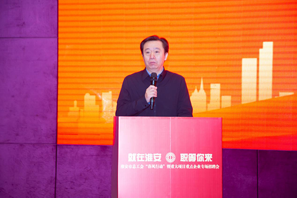 招聘活動開始前,淮安市總工會隆重舉辦招聘會啟動儀式。